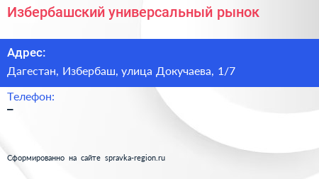Избербашский универсальный рынок по адресу Дагестан, Избербаш, улица Докучаева, 1/7 в дальнейшем Организация, размещена в следующих категориях: