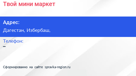 Твой, мини-маркет по адресу Дагестан, Избербаш, в дальнейшем Организация, размещена в следующих категориях: