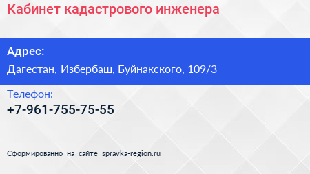 Кабинет кадастрового инженера по адресу Дагестан, Избербаш, Буйнакского, 109/3 в дальнейшем Организация, размещена в следующих категориях: