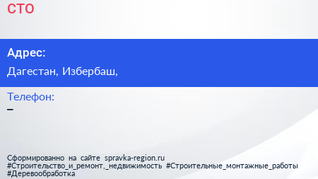 СТО по адресу Дагестан, Избербаш, в дальнейшем Организация, размещена в следующих категориях: