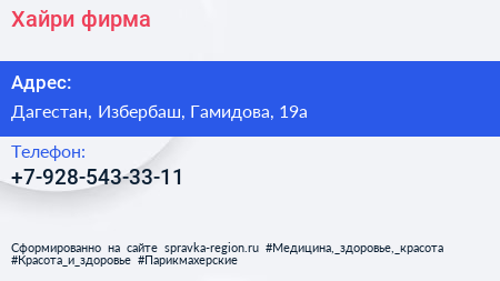 Хайри, фирма по адресу Дагестан, Избербаш, Гамидова, 19а в дальнейшем Организация, размещена в следующих категориях: