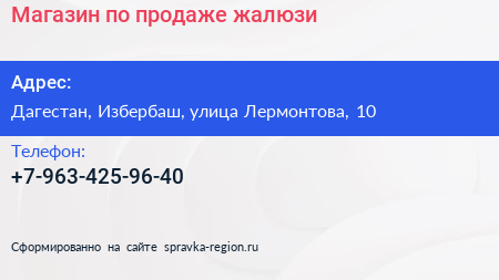 Магазин по продаже жалюзи по адресу Дагестан, Избербаш, улица Лермонтова, 10 в дальнейшем Организация, размещена в следующих категориях: