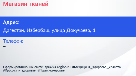 Магазин тканей по адресу Дагестан, Избербаш, улица Докучаева, 1 в дальнейшем Организация, размещена в следующих категориях: