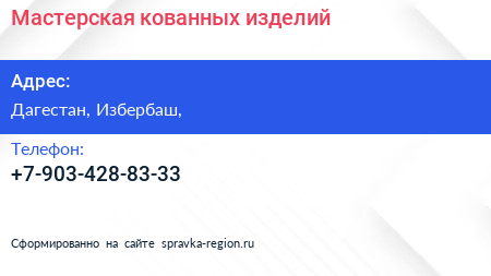Мастерская кованных изделий по адресу Дагестан, Избербаш, в дальнейшем Организация, размещена в следующих категориях: