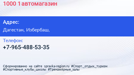 1000+1, автомагазин по адресу Дагестан, Избербаш, в дальнейшем Организация, размещена в следующих категориях:
