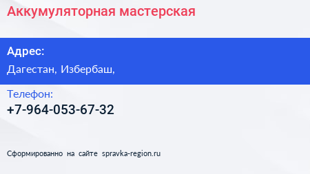 Аккумуляторная, мастерская по адресу Дагестан, Избербаш, в дальнейшем Организация, размещена в следующих категориях: