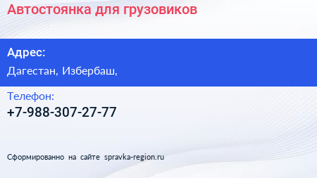Автостоянка для грузовиков по адресу Дагестан, Избербаш, в дальнейшем Организация, размещена в следующих категориях: