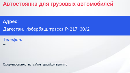 Автостоянка для грузовых автомобилей по адресу Дагестан, Избербаш, трасса Р-217, 30/2 в дальнейшем Организация, размещена в следующих категориях:
