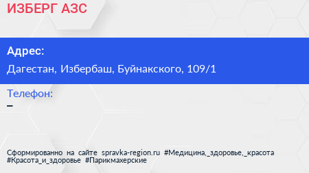 ИЗБЕРГ, АЗС по адресу Дагестан, Избербаш, Буйнакского, 109/1 в дальнейшем Организация, размещена в следующих категориях: