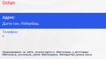 Octan по адресу Дагестан, Избербаш, в дальнейшем Организация, размещена в следующих категориях: