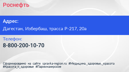 Роснефть по адресу Дагестан, Избербаш, трасса Р-217, 20а в дальнейшем Организация, размещена в следующих категориях: