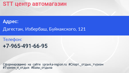 STT центр, автомагазин по адресу Дагестан, Избербаш, Буйнакского, 121 в дальнейшем Организация, размещена в следующих категориях:
