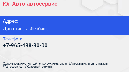 Юг-Авто, автосервис по адресу Дагестан, Избербаш, в дальнейшем Организация, размещена в следующих категориях: