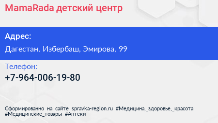 MamaRada, детский центр по адресу Дагестан, Избербаш, Эмирова, 99 в дальнейшем Организация, размещена в следующих категориях: