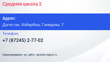 Средняя школа №2 по адресу Дагестан, Избербаш, Гамидова, 7 в дальнейшем Организация, размещена в следующих категориях: