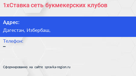 1xСтавка, сеть букмекерских клубов по адресу Дагестан, Избербаш, в дальнейшем Организация, размещена в следующих категориях: