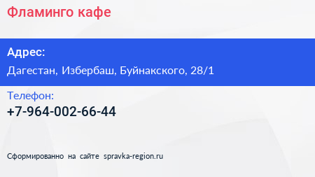 Фламинго, кафе по адресу Дагестан, Избербаш, Буйнакского, 28/1 в дальнейшем Организация, размещена в следующих категориях: