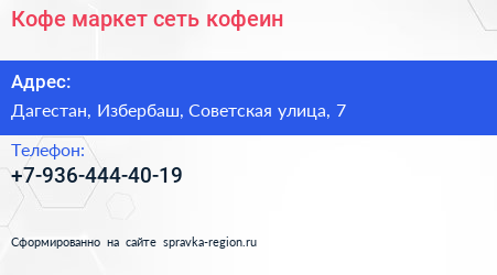 Кофе маркет, сеть кофеин по адресу Дагестан, Избербаш, Советская улица, 7 в дальнейшем Организация, размещена в следующих категориях: