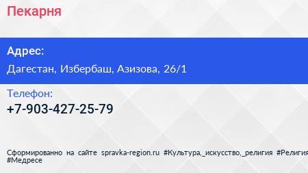Пекарня по адресу Дагестан, Избербаш, Азизова, 26/1 в дальнейшем Организация, размещена в следующих категориях: