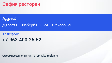 Сафия, ресторан по адресу Дагестан, Избербаш, Буйнакского, 20 в дальнейшем Организация, размещена в следующих категориях: