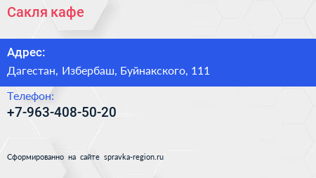 Сакля, кафе по адресу Дагестан, Избербаш, Буйнакского, 111 в дальнейшем Организация, размещена в следующих категориях: