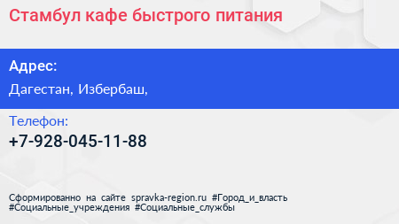 Стамбул, кафе быстрого питания по адресу Дагестан, Избербаш, в дальнейшем Организация, размещена в следующих категориях: