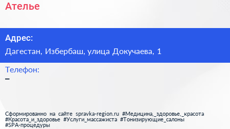 Ателье по адресу Дагестан, Избербаш, улица Докучаева, 1 в дальнейшем Организация, размещена в следующих категориях: