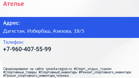 Ателье по адресу Дагестан, Избербаш, Азизова, 18/5 в дальнейшем Организация, размещена в следующих категориях: