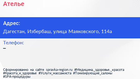 Ателье по адресу Дагестан, Избербаш, улица Маяковского, 114а в дальнейшем Организация, размещена в следующих категориях: