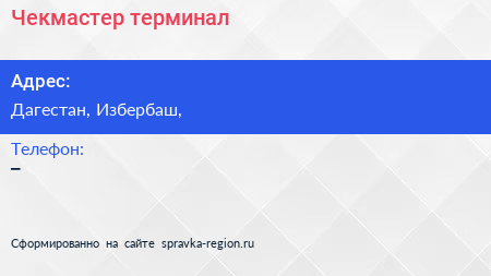 Чекмастер, терминал по адресу Дагестан, Избербаш, в дальнейшем Организация, размещена в следующих категориях: