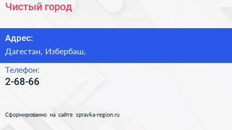 Чистый город по адресу Дагестан, Избербаш, в дальнейшем Организация, размещена в следующих категориях: