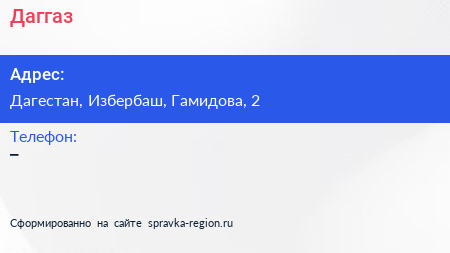 Даггаз по адресу Дагестан, Избербаш, Гамидова, 2 в дальнейшем Организация, размещена в следующих категориях: