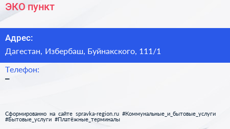 ЭКО пункт по адресу Дагестан, Избербаш, Буйнакского, 111/1 в дальнейшем Организация, размещена в следующих категориях: