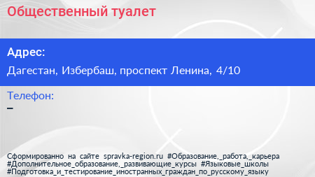 Общественный туалет по адресу Дагестан, Избербаш, проспект Ленина, 4/10 в дальнейшем Организация, размещена в следующих категориях:
