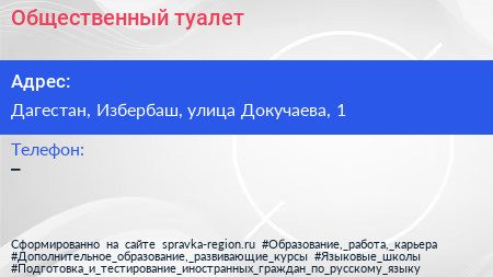 Общественный туалет по адресу Дагестан, Избербаш, улица Докучаева, 1 в дальнейшем Организация, размещена в следующих категориях: