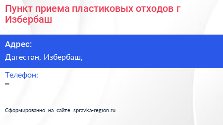 Пункт приема пластиковых отходов, г. Избербаш по адресу Дагестан, Избербаш, в дальнейшем Организация, размещена в следующих категориях:
