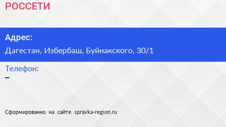 РОССЕТИ по адресу Дагестан, Избербаш, Буйнакского, 30/1 в дальнейшем Организация, размещена в следующих категориях: