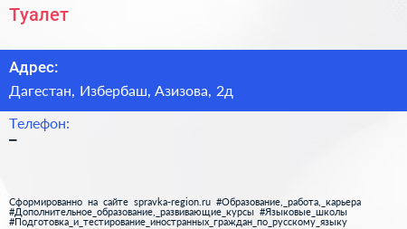 Туалет по адресу Дагестан, Избербаш, Азизова, 2д в дальнейшем Организация, размещена в следующих категориях: