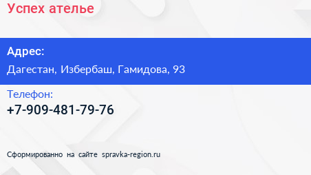Успех, ателье по адресу Дагестан, Избербаш, Гамидова, 93 в дальнейшем Организация, размещена в следующих категориях: