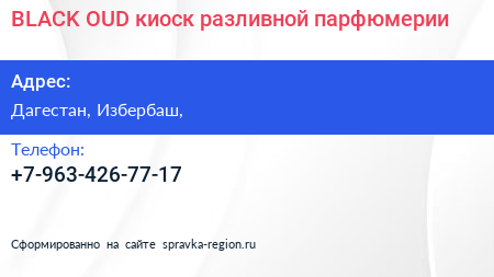 BLACK OUD, киоск разливной парфюмерии по адресу Дагестан, Избербаш, в дальнейшем Организация, размещена в следующих категориях:
