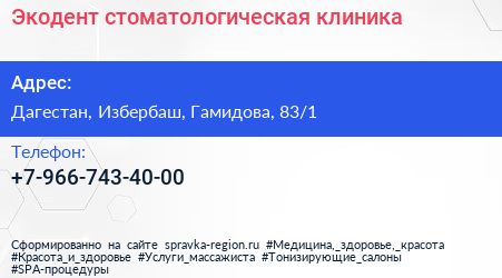Экодент, стоматологическая клиника по адресу Дагестан, Избербаш, Гамидова, 83/1 в дальнейшем Организация, размещена в следующих категориях: