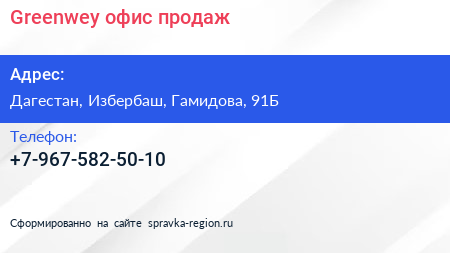 Greenwey, офис продаж по адресу Дагестан, Избербаш, Гамидова, 91Б в дальнейшем Организация, размещена в следующих категориях: