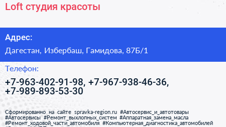 Loft, студия красоты по адресу Дагестан, Избербаш, Гамидова, 87Б/1 в дальнейшем Организация, размещена в следующих категориях: