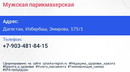Мужская парикмахерская по адресу Дагестан, Избербаш, Эмирова, 175/1 в дальнейшем Организация, размещена в следующих категориях: