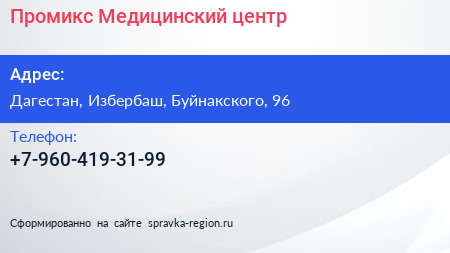 Промикс, Медицинский центр по адресу Дагестан, Избербаш, Буйнакского, 96 в дальнейшем Организация, размещена в следующих категориях: