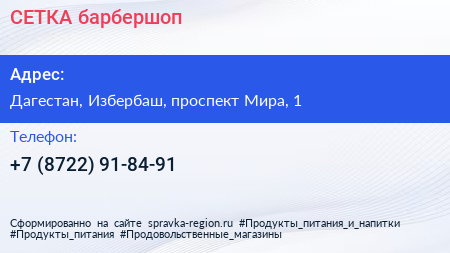 СЕТКА, барбершоп по адресу Дагестан, Избербаш, проспект Мира, 1 в дальнейшем Организация, размещена в следующих категориях:
