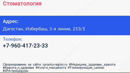 Стоматология по адресу Дагестан, Избербаш, 5-я линия, 213/1 в дальнейшем Организация, размещена в следующих категориях: