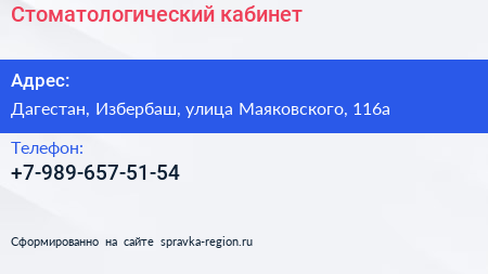 Стоматологический кабинет по адресу Дагестан, Избербаш, улица Маяковского, 116а в дальнейшем Организация, размещена в следующих категориях: