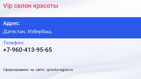 Vip, салон красоты по адресу Дагестан, Избербаш, в дальнейшем Организация, размещена в следующих категориях: