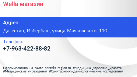 Wella, магазин по адресу Дагестан, Избербаш, улица Маяковского, 110 в дальнейшем Организация, размещена в следующих категориях: